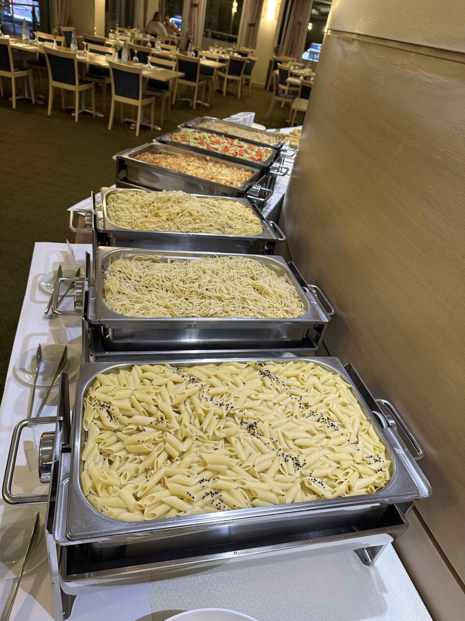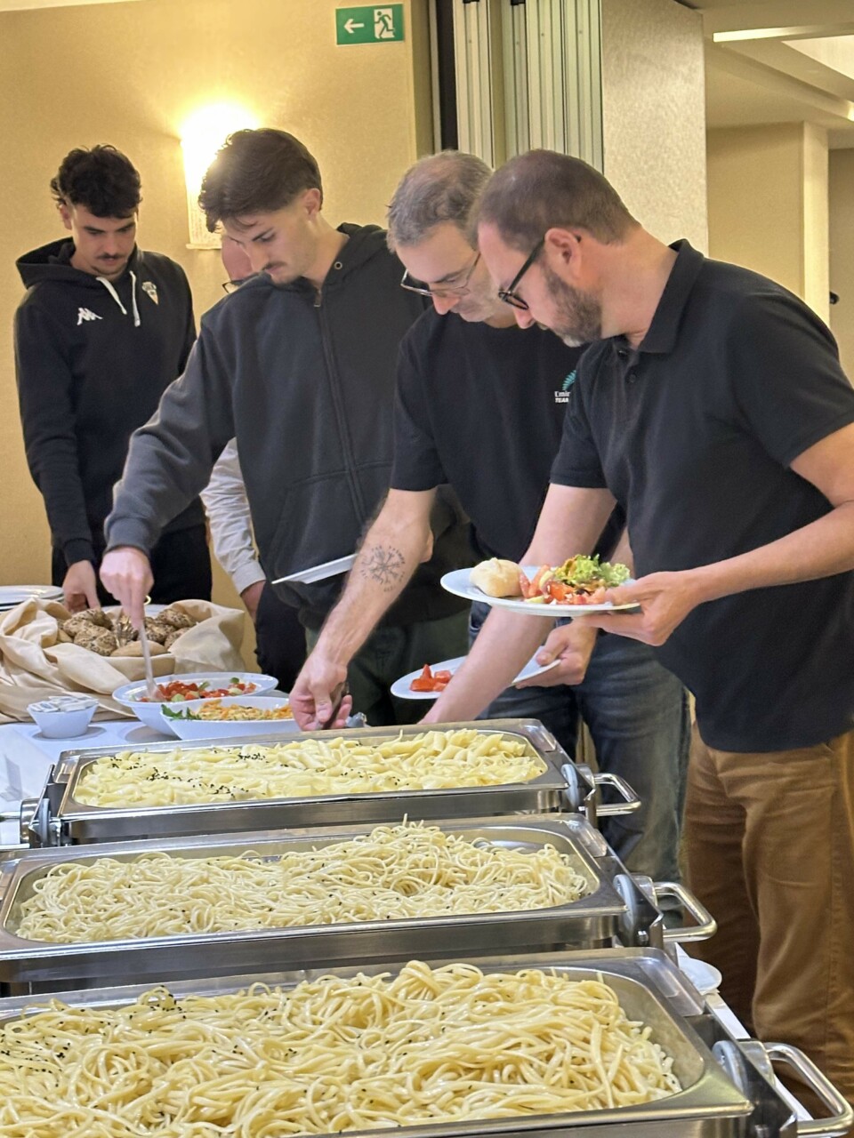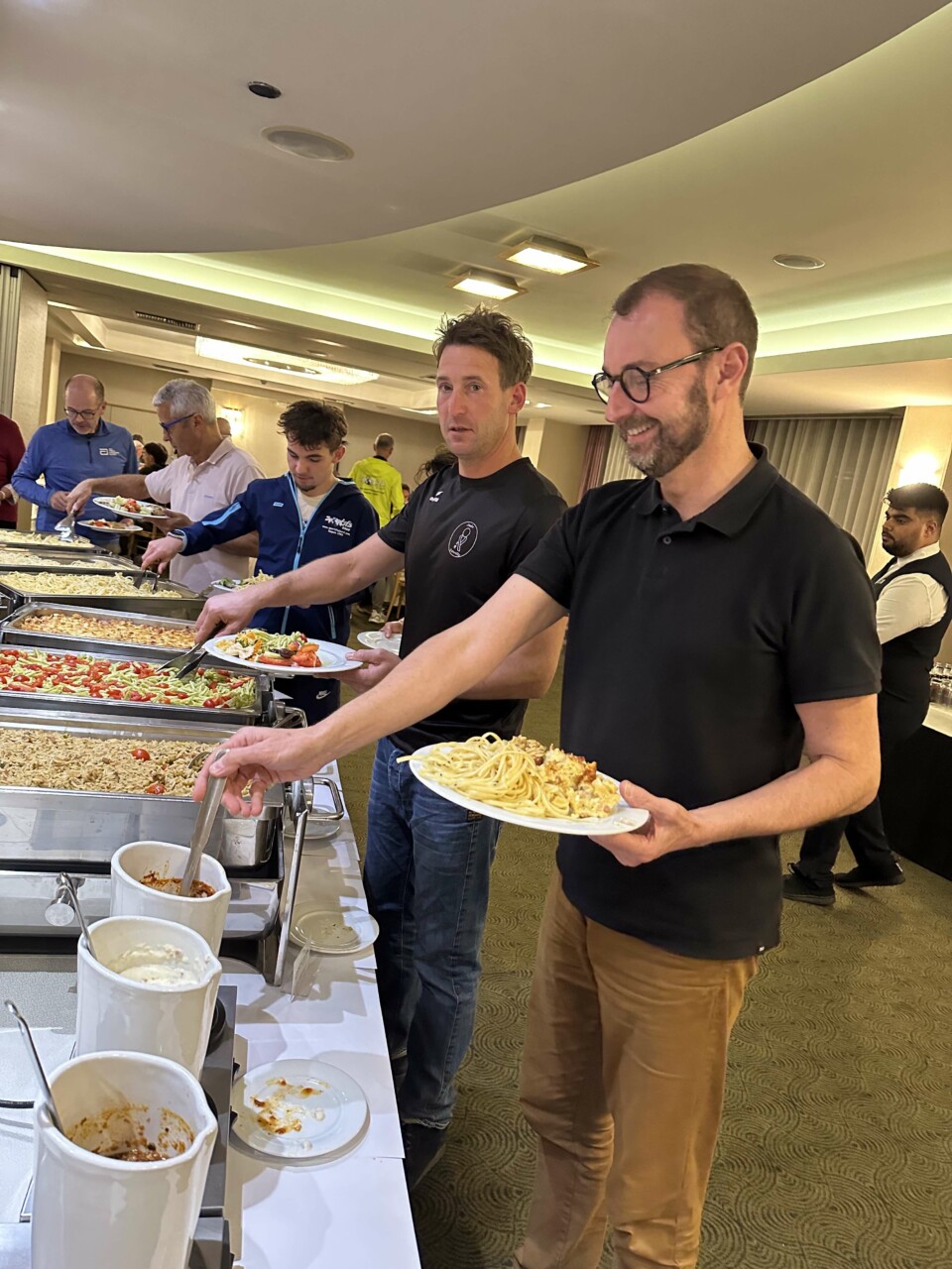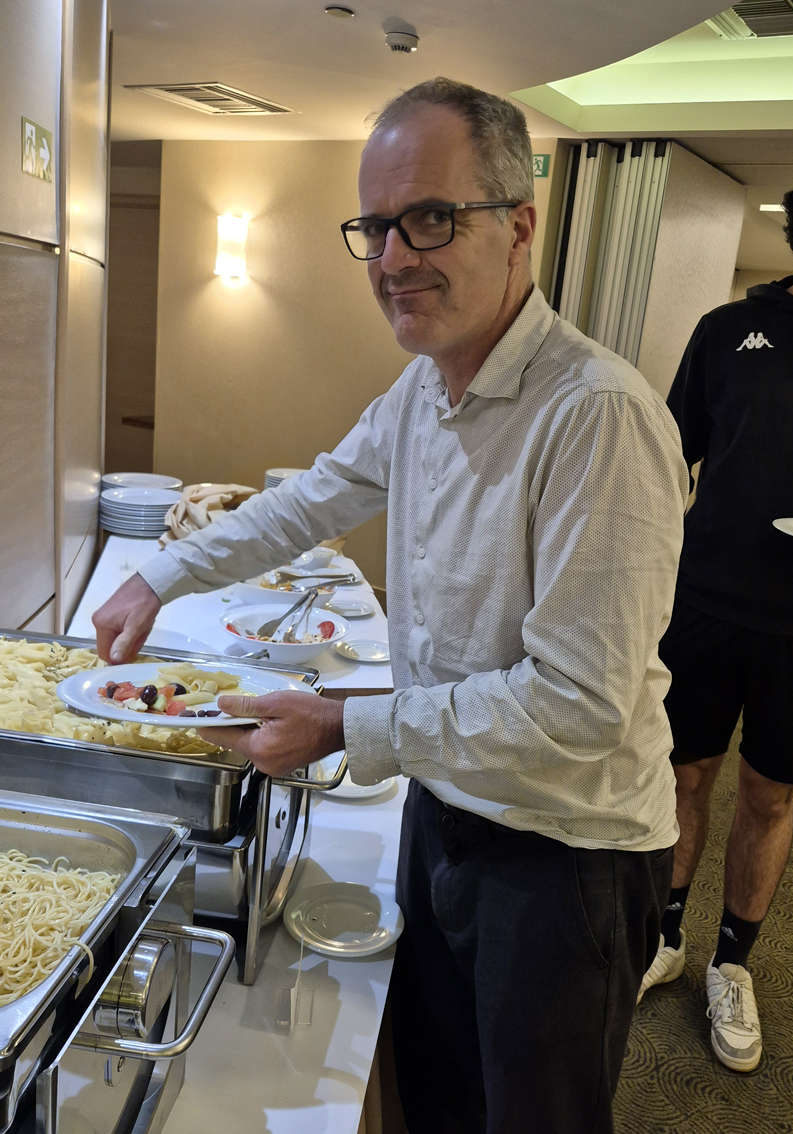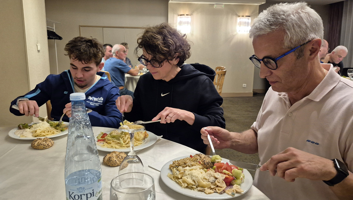 SAMEDI SOIRPASTA PARTY (en option)Comme à notre habitude, nous vous proposons une pasta party à notre hôtel, servie sous forme de buffet et à volonté. Les entrées sont un choix de crudités et salades. Le plat principal est une variété des pâtes avec différentes sauces et enfin le dessert. Prix par personne : 35€ |